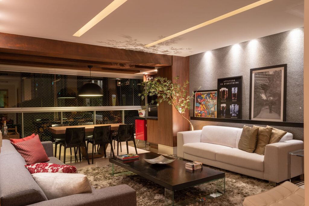 • Sala de Estar: Misture luz direta e indireta para criar um clima acolhedor. Abajures, pendentes e luzes de realce são excelentes opções.