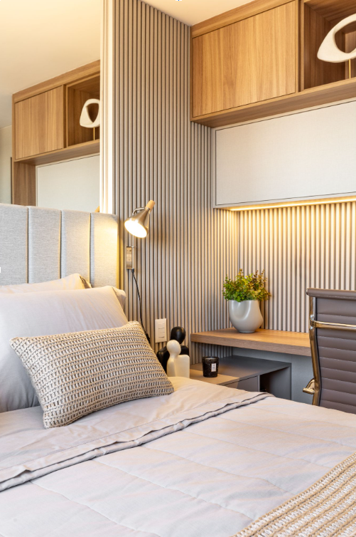 • Quartos e Espaços de Descanso: Luz suave e ajustável é o segredo para um ambiente relaxante.